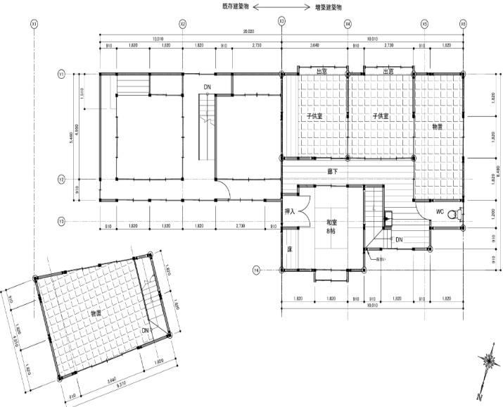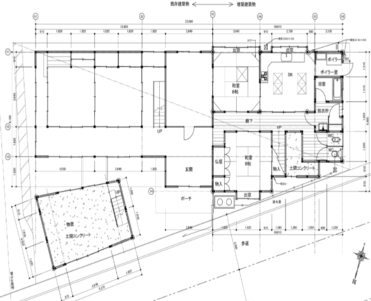 増築部は柱や梁などの構造体はしっかりしていますが、旧家建物は修繕が必要になることが想定されます。